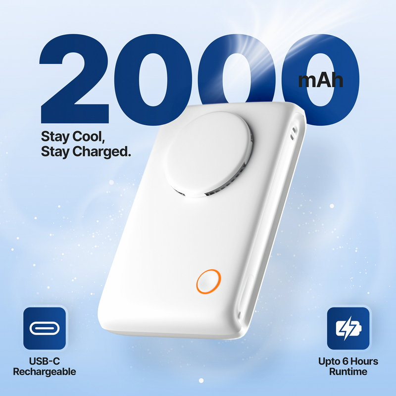 Whether you need a gentle breeze, steady cooling, or a powerful airflow, AeroChill adapts to your comfort. With Gentle, Middle, and Strong modes, you can easily switch between settings to match your activity—reading, commuting, working out, or relaxing outdoors. Your perfect level of freshness is just a click away.
