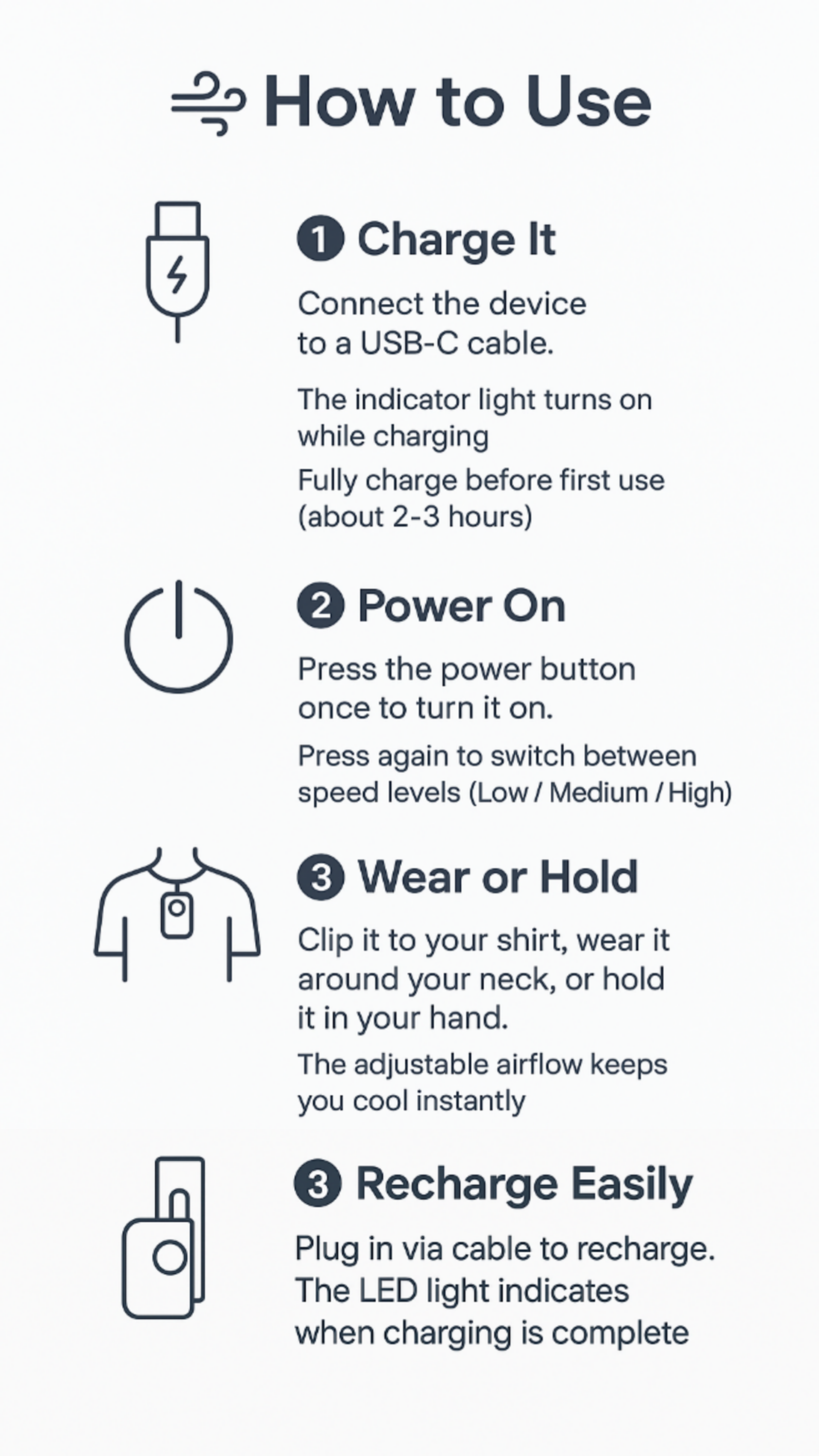 The #1 hands-free cooling fan for beating the heat anywhere — indoors, outdoors, or on the go. Stay fresh, sweat-free, and comfortable all day long.